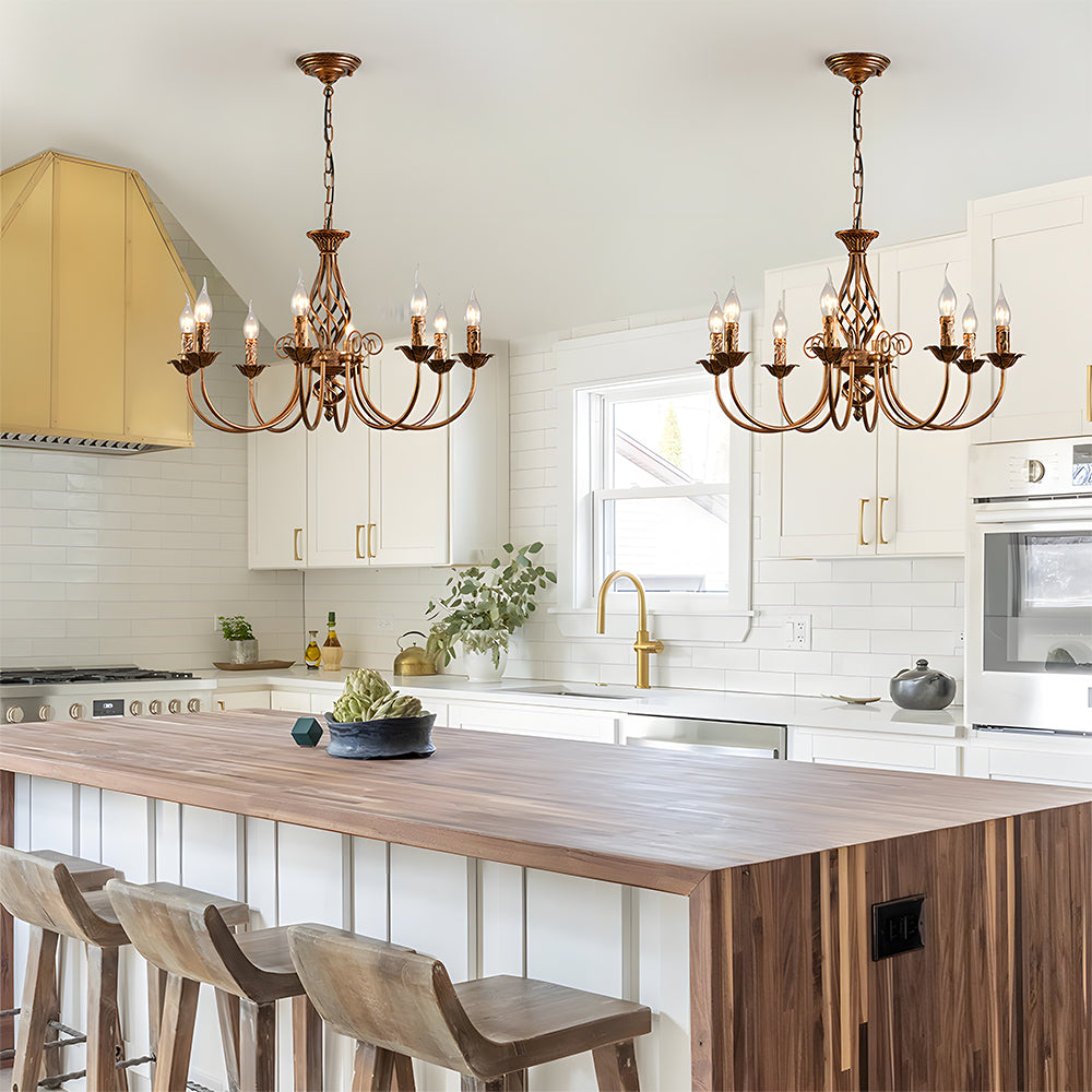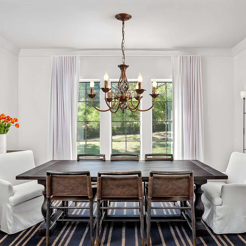 Trött på kall, opersonlig belysning vid ditt matbord? Denna vintage bronspendel ger gammaldags charm med en modern tvist till ditt matsal. Dess rika bronsfinish och graciöst svepande kurvor skapar ett varmt, inbjudande sken som förbättrar varje samtal och måltid. Finns i 4, 6 eller 8-ljuskonfigurationer, den balanserar skala med atmosfär och anpassar sig vackert över matsalar, kök eller till och med vardagsrum. Med mått upp till cirka 27,6 tum bred och 27,6 tum hög, är det den perfekta blandningen av dekorativ flair och funktionell belysning.