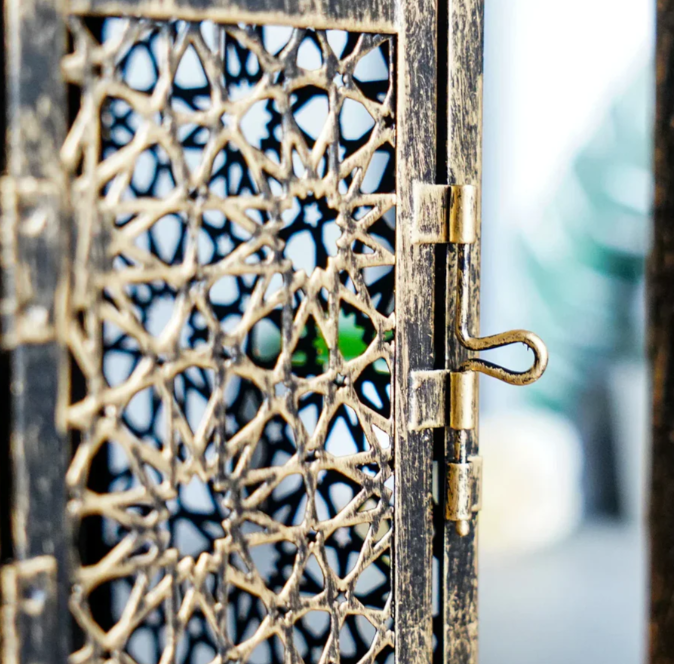 Det vintage-vindljuset i bronzodesign är det perfekta valet för att ge ditt hem en varm, stilfull atmosfär. Med sitt detaljrika orientaliska mönster och den ädla bronzfärgen blir detta vindljus en riktig blickfångare – oavsett om det är i vardagsrummet, på terrassen eller som ett höjdpunkt i din bordsdekoration.