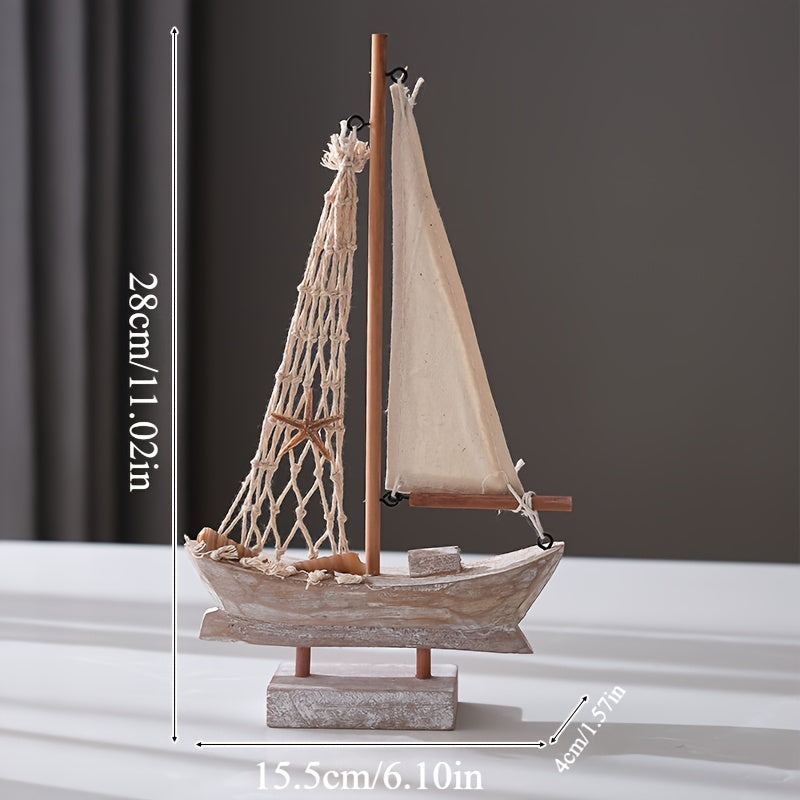 Ta med atmosfären från havet in i ditt hem med denna eleganta träsegelbåt. Den förfinade designen, som kombinerar trä och tyg, skapar en rustik och maritim känsla. Denna dekorativa segelbåt är den perfekta accenten för ett vardagsrum, kontor eller sovrum, och passar perfekt in i en nautiskt inspirerad inredning. Det är en subtil men imponerande detalj som utstrålar en känsla av äventyr och lugn.
