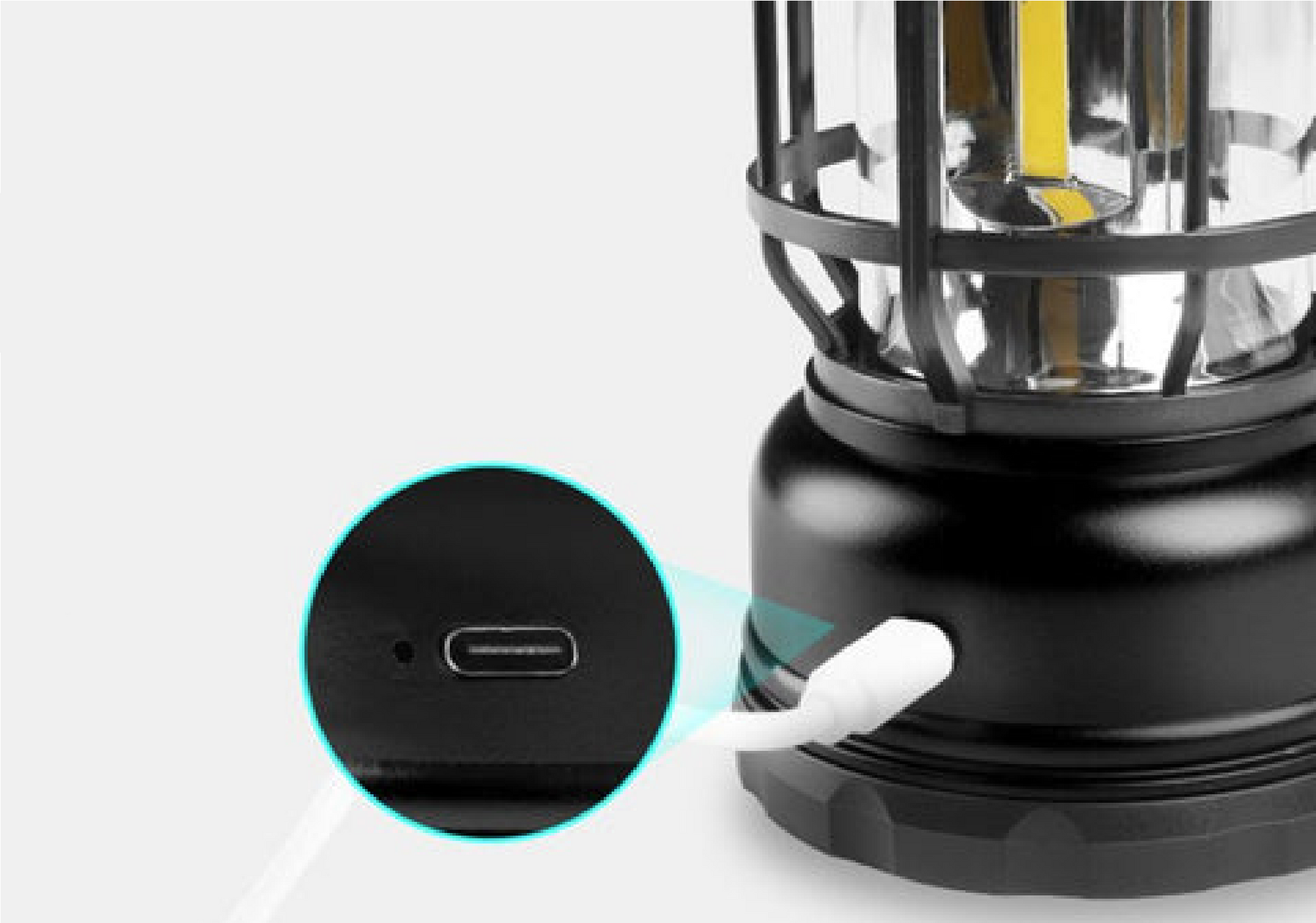 - USB-C laddning: Uppladdningsbart batteri (1200 mAh) med tydlig indikator – ger dig flera dagars ljus på en laddning.