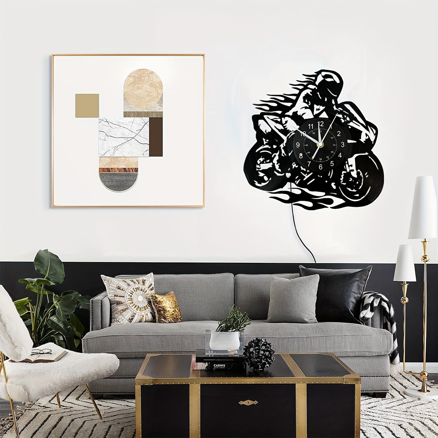 Vinylskivklocka - Motortema, Stil, För Vardagsrum och Kontorsdekoration