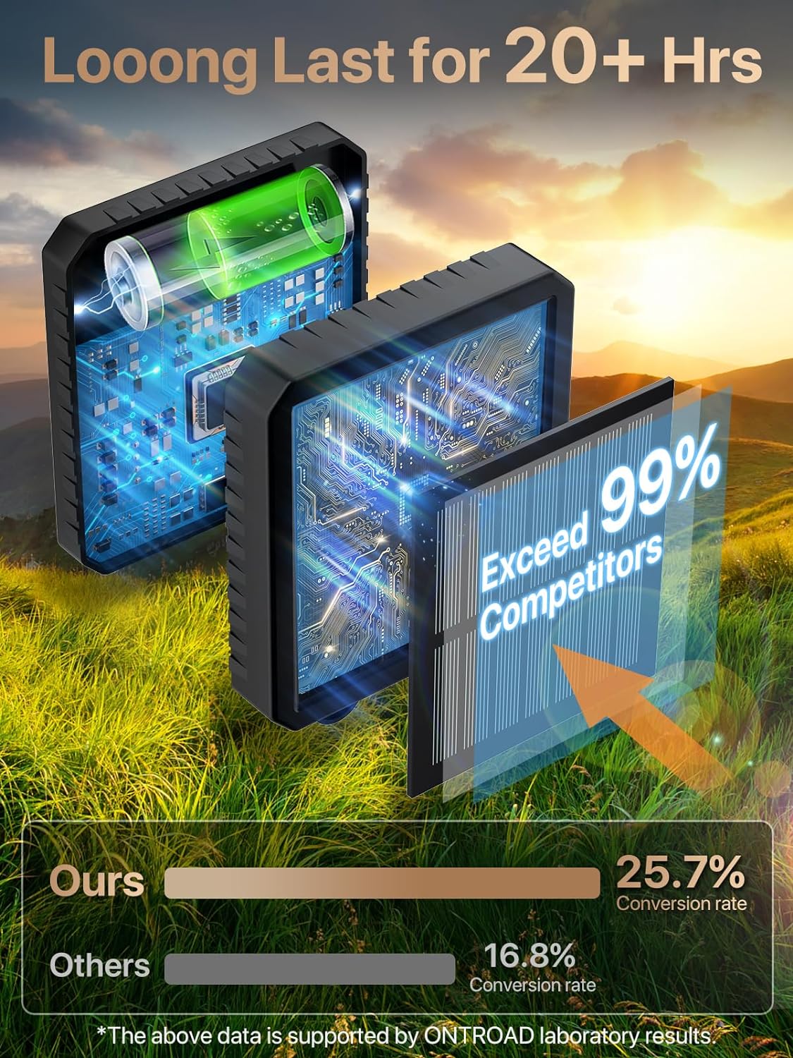 【EXTREMT LÅNG ANVÄNDNINGSTID】ONTROAD solgårdsbelysning har förbättrats genom användning av monokristallina solpaneler, med en imponerande konverteringseffektivitet på 25,7%, vilket innebär mer än 99% laddningseffektivitet på marknaden, vilket möjliggör bekymmersfri laddning, även på molniga eller korta vinterdagar. I kombination med 600mAh Ni-MH-batterier har vår solgårdsbelysning en livslängd på upp till 20 timmar, mycket längre än de på marknaden med bara hälften av kapaciteten och kortare belysningsperiod. Romantik hela natten lång!